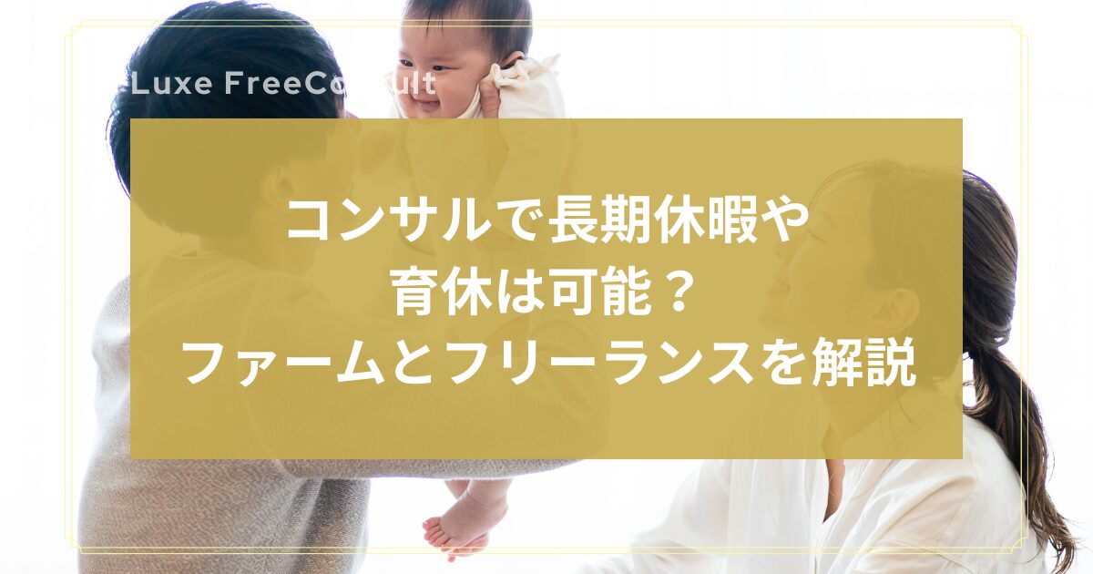 - Luxe FreeConsultでは、多くの上場企業やコンサルティングファームと強固な関係を築き、独自の案件を豊富に取り揃えています。継続的な案件参画をご希望の際は、案件が途切れないよう、ご要望に合わせた案件をご提案しますのでご安心ください。